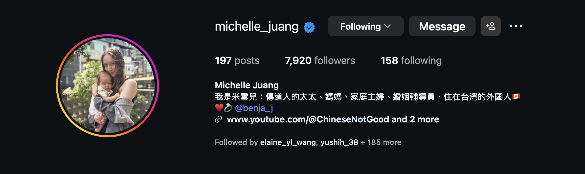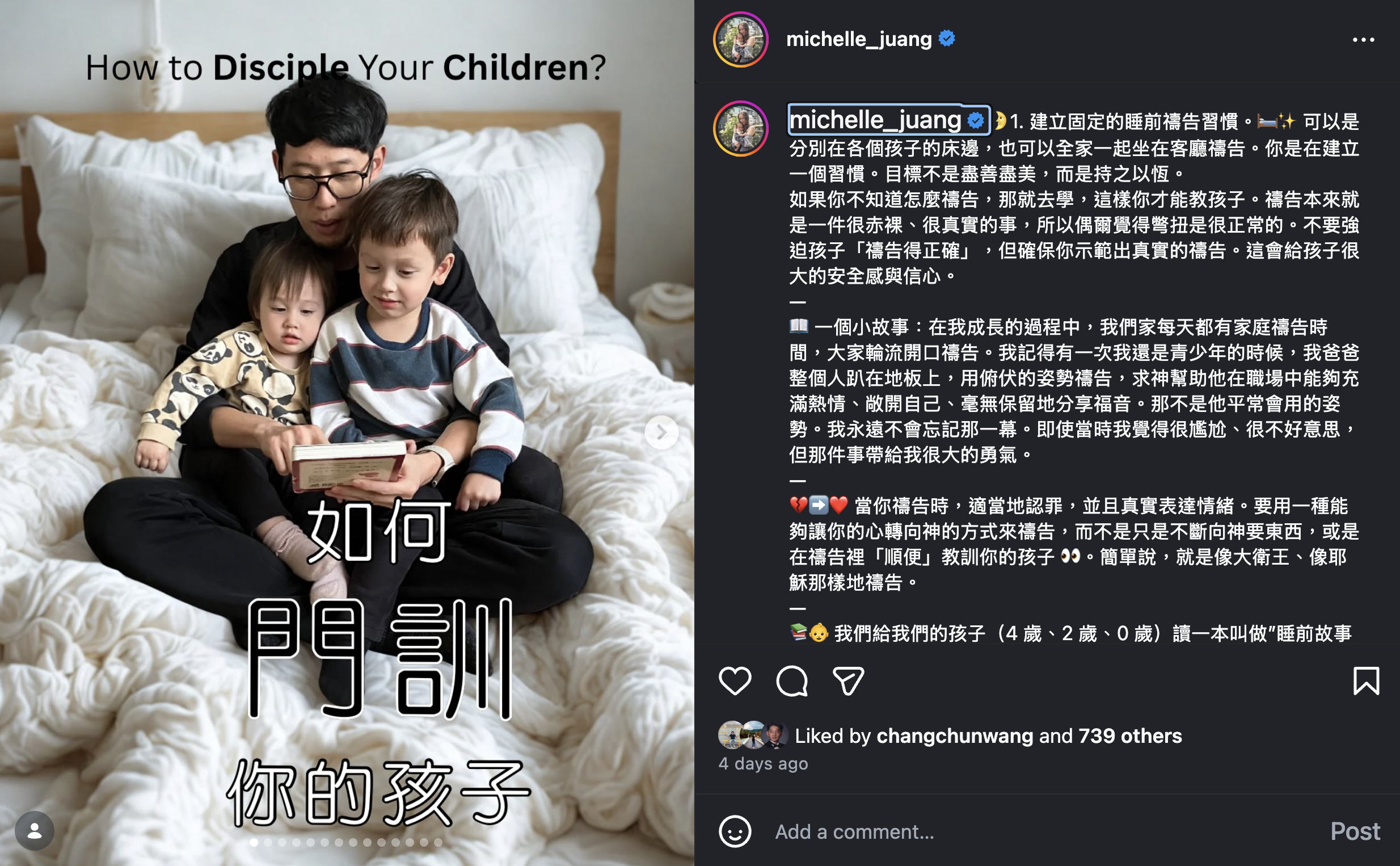 家庭:非常感謝大家的代禱,我們一家的孩子過去兩個月基本上沒怎麼生病。Michelle的爸爸媽媽來到台灣的旅程也順利結束。請替我們一家繼續適應三個孩子的生活來禱告,特別為著James與Amanda可以成為好哥哥好姊姊禱告。